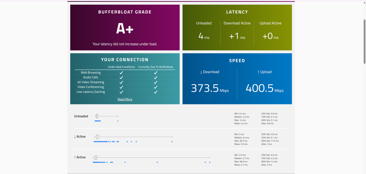 I have also done a buffer bloat test, which shows there is not any issue with my network.