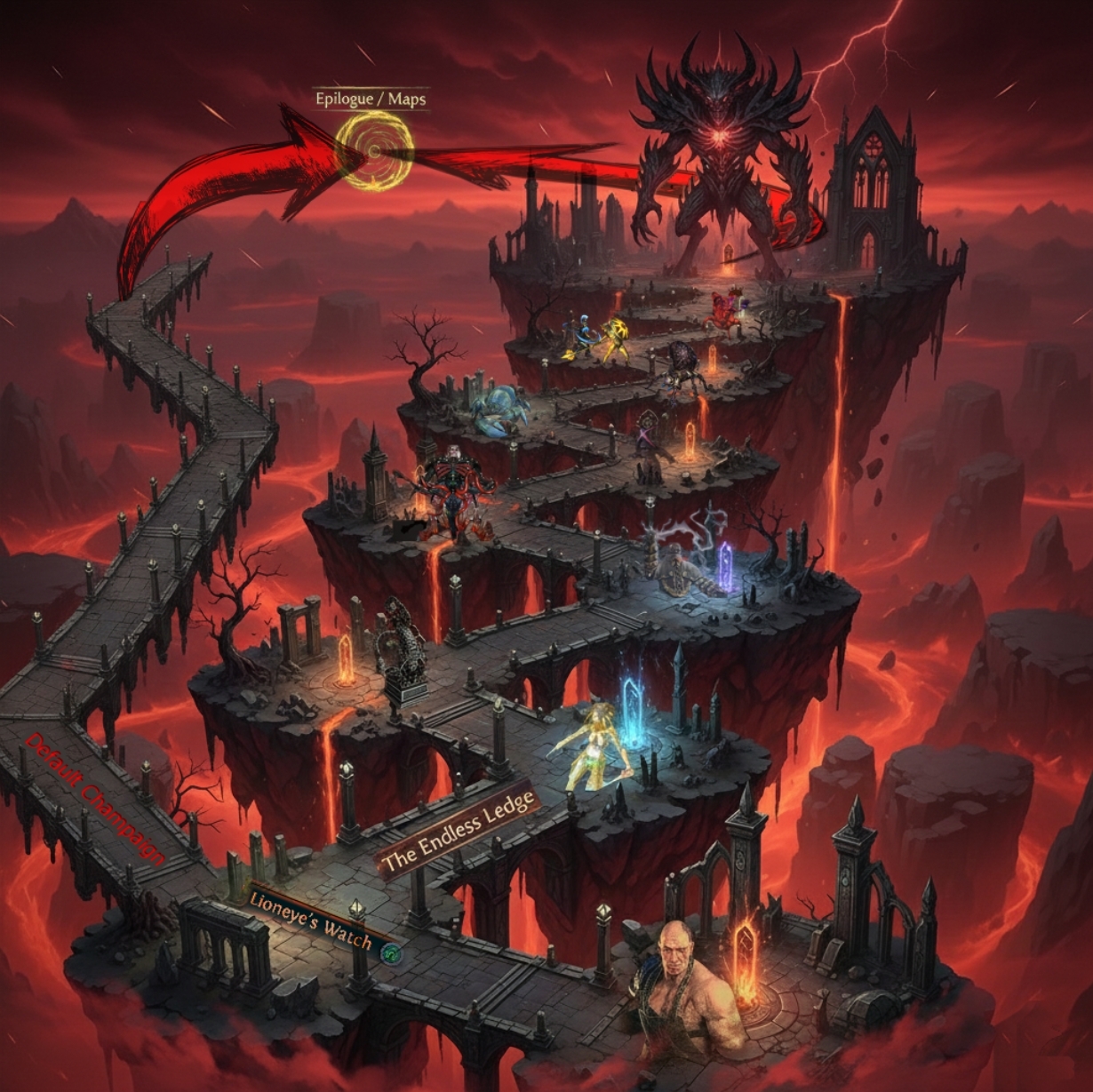 Historically (around version 1.8), this modifier was valued by both players and GGG because it offered significant upsides like a chance for a six-link, white sockets, or other valuable outcomes. These rewards, even minor bonuses, were considered substantial at the time. However, in the modern game state, the Corrupted Items modifier actively ruins the value of the loot drop, transforming it from a potential asset into vendor trash, all while the monster possessing the modifier gains a substantial power increase. This detriment vastly outweighs any potential benefits, especially for T16+ players. A. Fractured Items: Corruption renders these items 100% useless by removing their crafting potential. The modifier should be reworked to not affect them. B. Rare Items: Corrupted Rares are generally worthless unless they drop with at least 3-4+ T1 modifiers or an exceptional stat combination. The modifier should be adjusted to only apply to Rares that meet this high standard, otherwire, hidden on all lootfilters. C. Unique Items: is generally successful, offering a valuable high-risk, high-reward mechanic, and should remain unchanged. ![]() 1️⃣2️⃣ Acts & Character Leveling: Proposal: The Endless Ledge Alternative Leveling Repeating the campaign acts is a significant point of friction for veterans creating additional characters within the league. To address this, we propose an alternative leveling path for secondary characters once the campaign has been completed once in the current league. How it Works The Entry: Every character begins at The Twilight Strand. After defeating Hillock, players enter Lioneye’s Watch. The Choice: If the campaign has been cleared on a previous character, once leaving Lioneye’s Watch you have a choice: A. Default Campaign: Proceed through the acts normally. B. Endless Ledge: A high-intensity and mobs density path designed for players with leveling gear and build knowledge. The Mechanics: Players progress through 32 linear zones. Every few zones, a major Act Boss acts as a gatekeeper. Defeating the boss unlocks the next tier of monster levels.