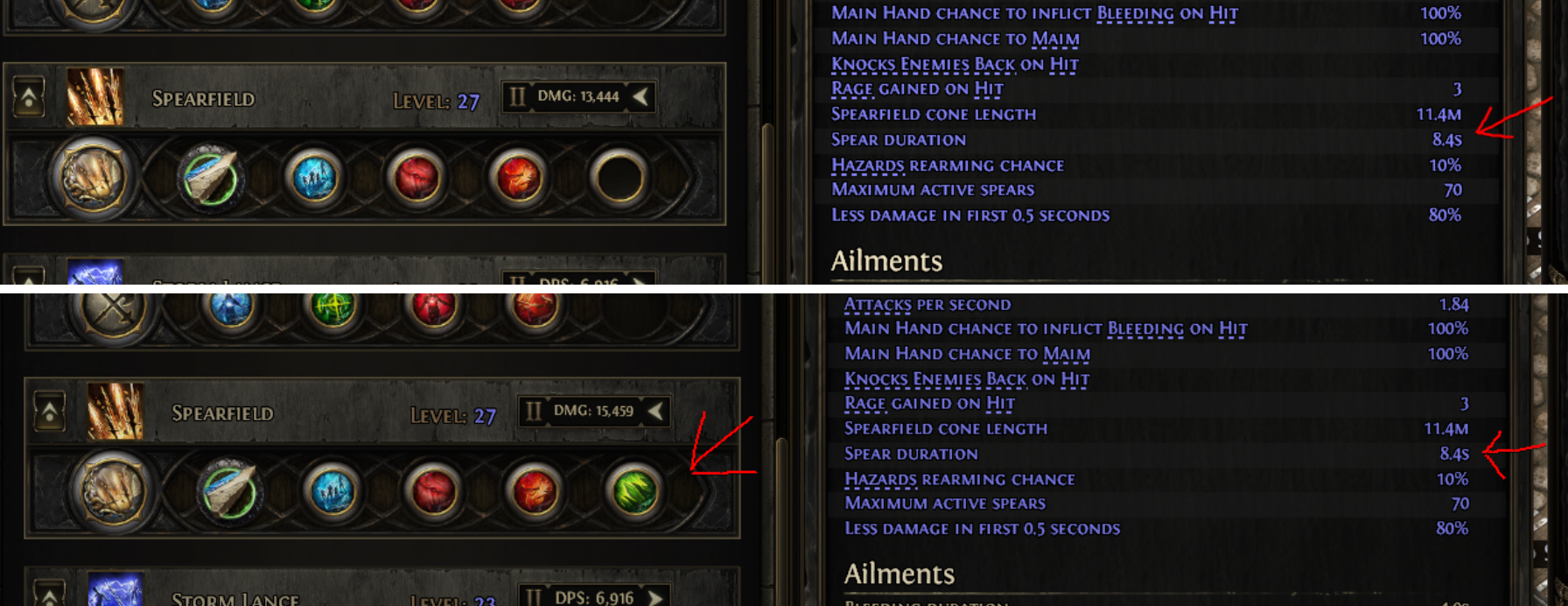 The Spearfield skill with Delay Reaction support is bugged. The less duration modifier on Spearfield is not being applied correctly.